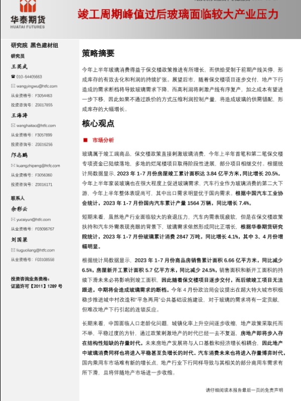 【华泰期货】【20230829】专题报告:竣工周期峰值过后玻璃面临较大产业压力-22页 行业研究