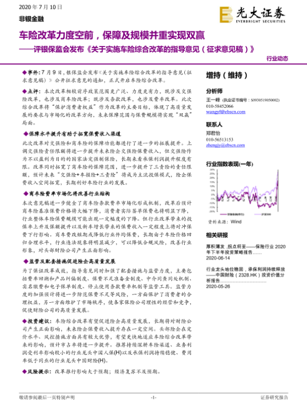 【光大证券】【20200710】评银保监会发布《关于实施车险综合改革的指导意见(征求意见稿)》:车险改革力度空前,保障及规模并重实现双赢-10页 行业研究