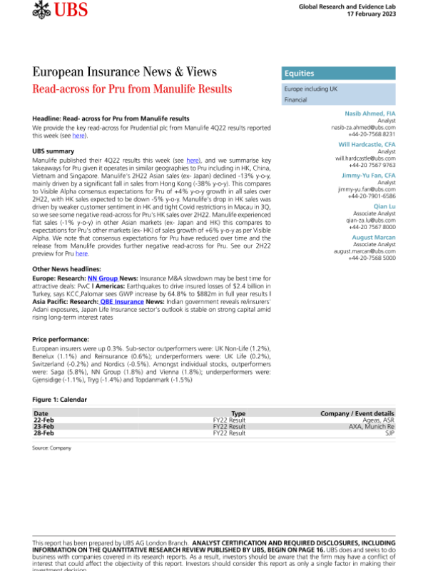 【UBS】【20230217】European Insurance News & Views - Read-across for Pru from Manulife Results-25页 行业研究