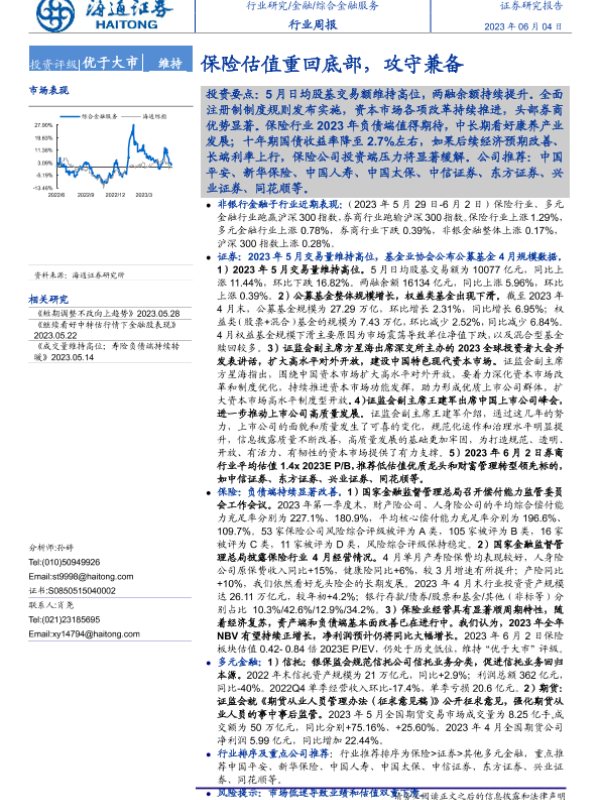 【海通国际】【20230606】非银周报:保险估值重回底部,攻守兼备-20页 行业研究