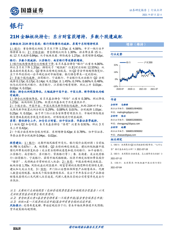 【国盛证券】【20210722】21H金融板块持仓:东方财富获增持,多数个股遭减配-4页 行业研究