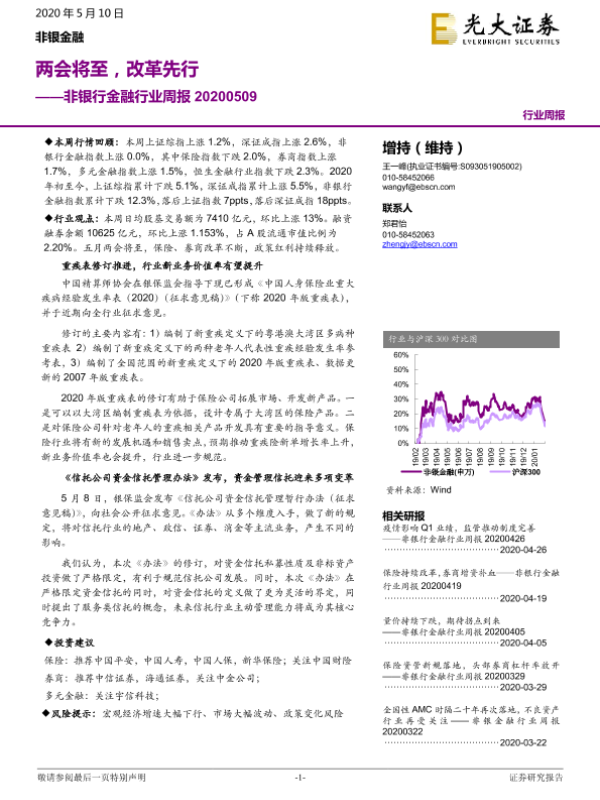 【光大证券】【20200510】非银行金融行业周报:两会将至,改革先行-16页 行业研究