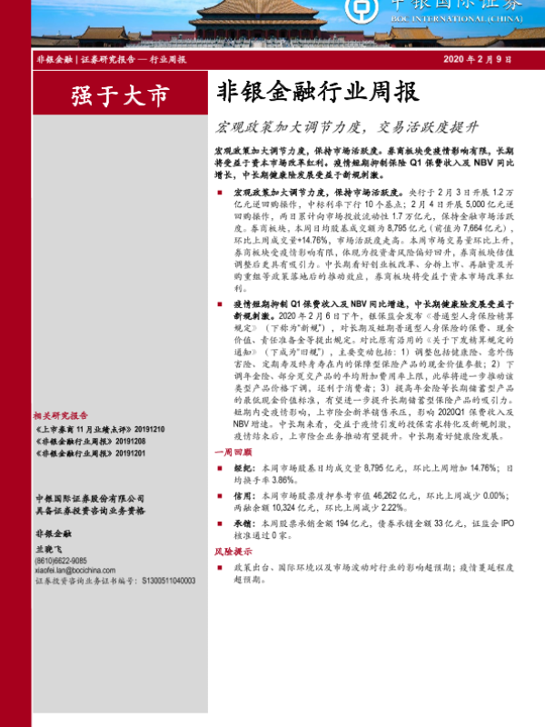 【中银证券】【20200209】非银金融行业周报:宏观政策加大调节力度,交易活跃度提升-12页 行业研究