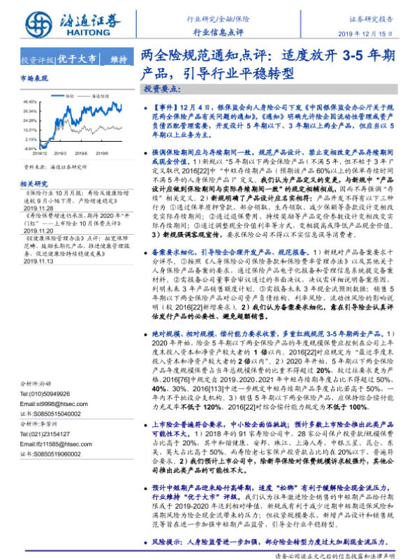 【海通证券】【20191215】两全险规范通知点评:适度放开3-5年期产品,引导行业平稳转型-4页 行业研究