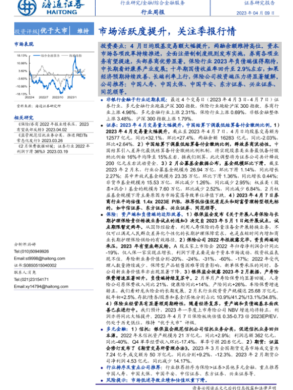 【海通证券】【20230409】综合金融服务行业周报:市场活跃度提升,关注季报行情-11页 行业研究