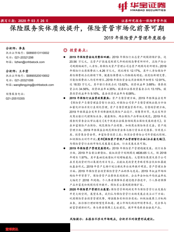 【华宝证券】【20200326】2019年保险资产管理年度报告-37页 行业研究