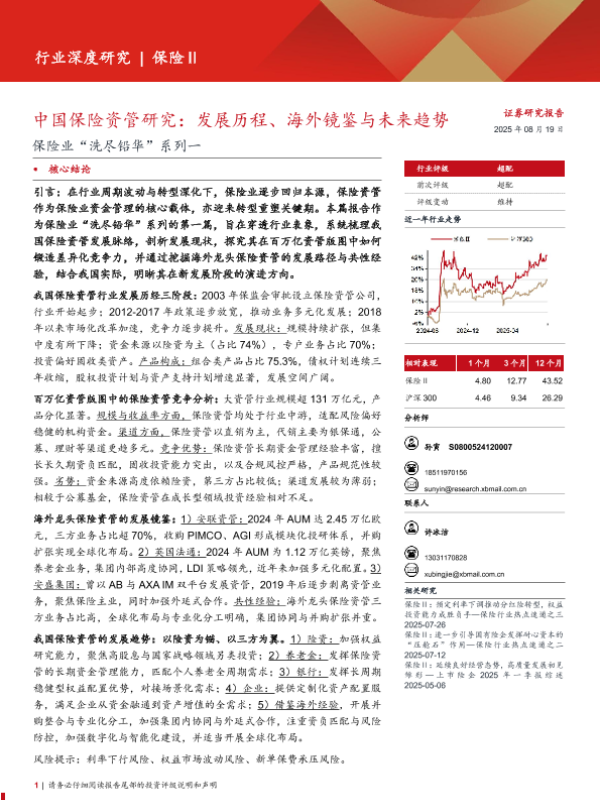 【西部证券】【202508】保险行业“洗尽铅华”系列一:中国保险资管研究,发展历程、海外镜鉴与未来趋势-33页 证券期货研究报告
