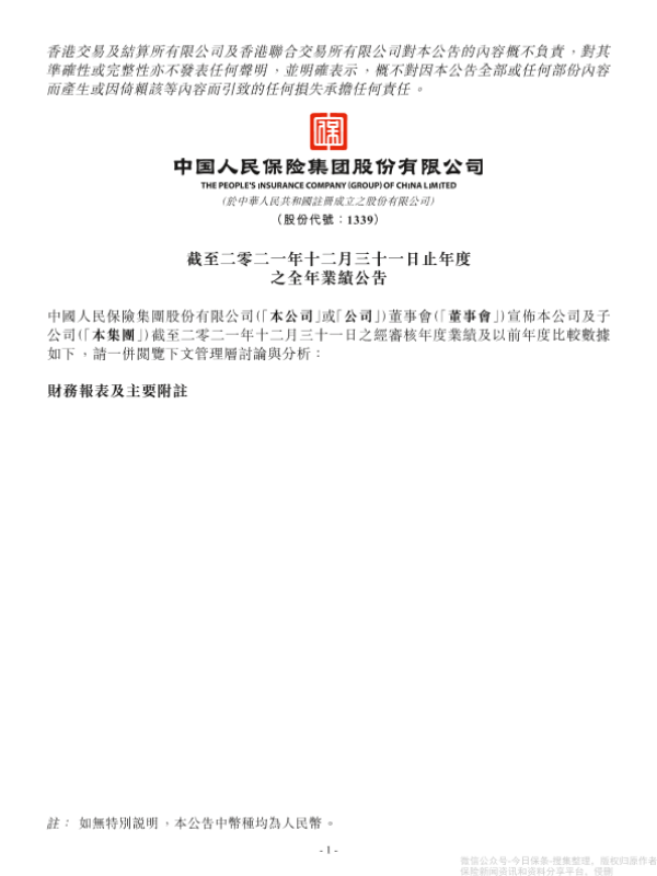 【中国中国人民保险集团股份有限公司】【20220101】人保集团 2021年业绩报告-69页 行业研究