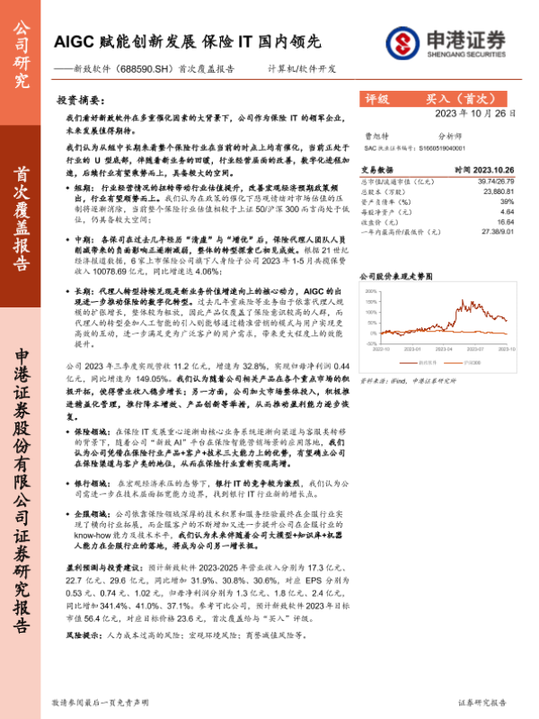 【申港证券】【20231026】20231026-申港证券-新致软件-688590.SH-首次覆盖报告:AIGC赋能创新发展 保险IT国内领先-23页 行业研究