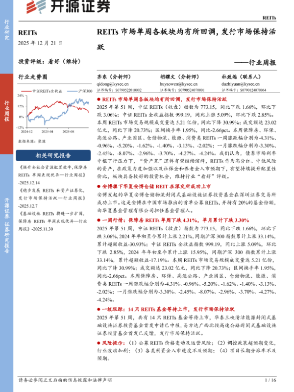 【开源证券】【202512】REITs行业周报:保障房REITs单周表现优异,发行市场保持活跃-16页 证券期货研究报告