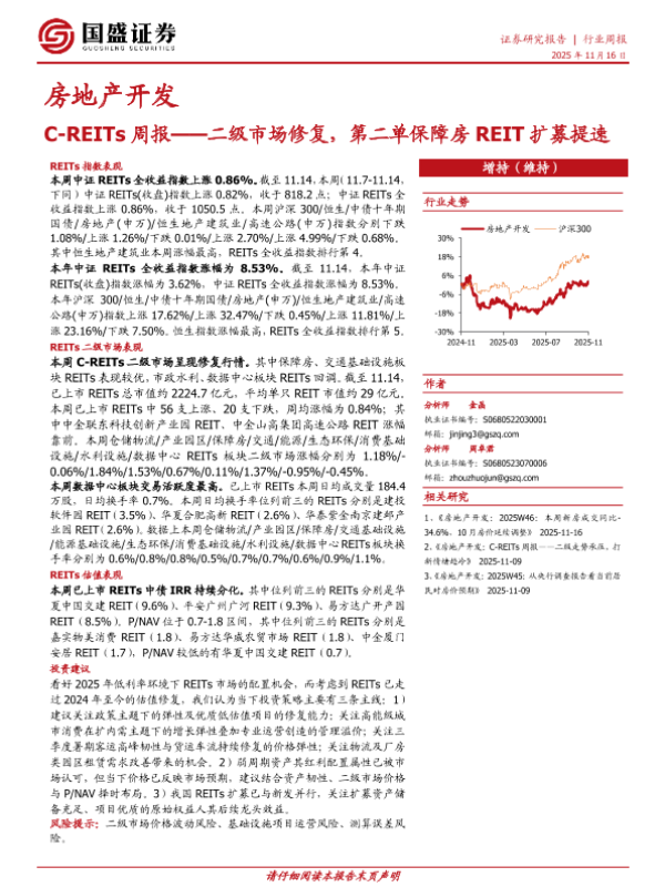 【国盛证券】【202511】C-REITs周报——二级市场修复,第二单保障房 REIT扩募提速-11页 证券期货研究报告