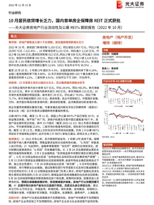 【光大证券】【20221115】10月居民信贷增长乏力,国内首单房企保障房REIT正式获批-19页 行业研究