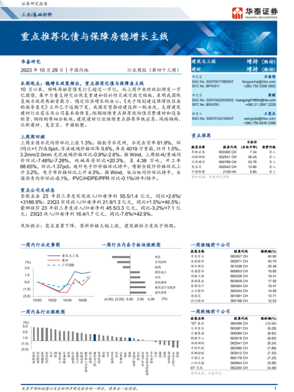 【华泰证券】【20231029】工业基础材料行业周报(第四十三周):重点推荐化债与保障房稳增长主线-18页 行业研究