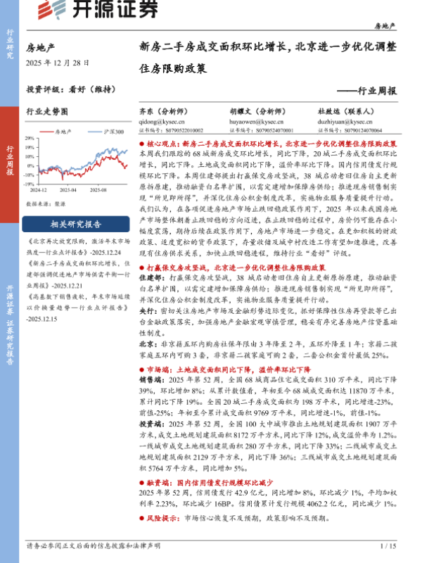 【开源证券】【202512】新房二手房成交面积环比增长,北京进一步优化调整住房限购政策-15页 证券期货研究报告