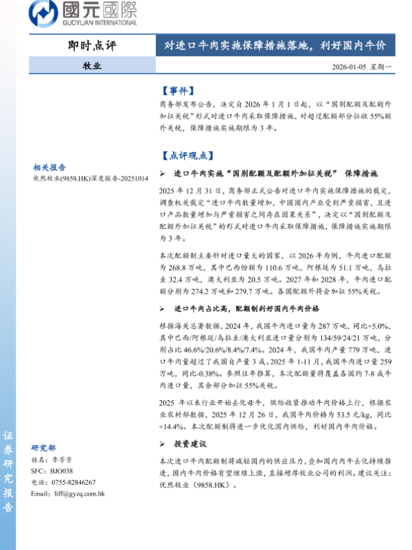 【国元国际】【202601】对进口牛肉实施保障措施落地,利好国内牛价-2页 证券期货研究报告