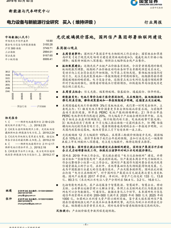 【国金证券】【20190303】电力设备与新能源行业研究周报:光伏玻璃提价落地,国网信产集团部署物联网建设-4页 行业研究