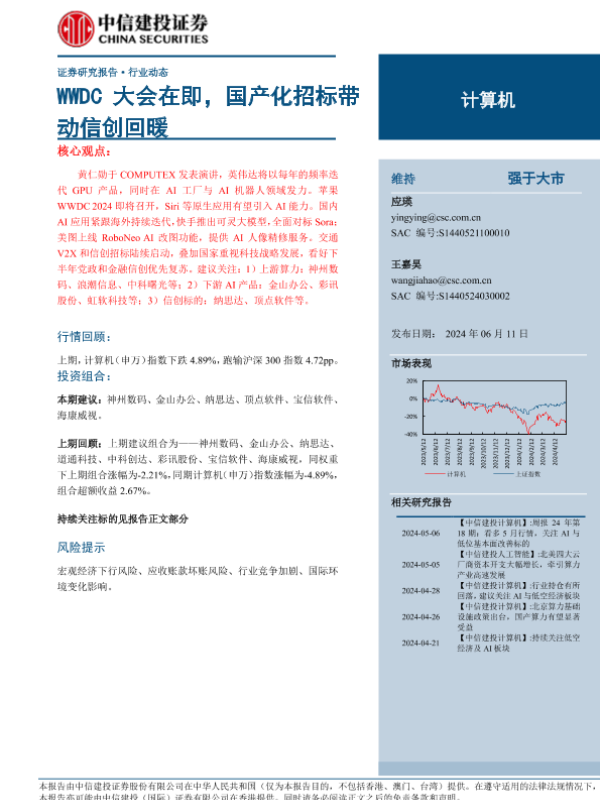 【中信建投证券】【20240611】计算机行业动态:WWDC大会在即,国产化招标带动信创回暖-11页 行业研究