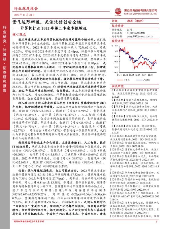 【东亚前海证券】【20221128】计算机行业2022年第三季度季报综述:景气边际回暖,关注泛信创安全链-43页 行业研究