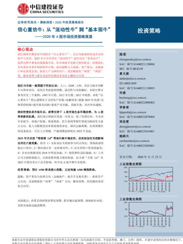 【中信建投证券】【20241125】2025年A股市场投资策略展望:信心重估牛,从“流动性牛”到“基本面牛”-41页 行业研究