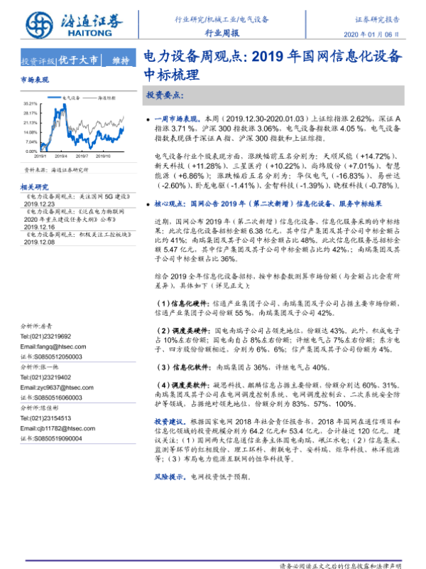 【海通证券】【20200106】电力设备周观点:2019年国网信息化设备中标梳理-8页 行业研究