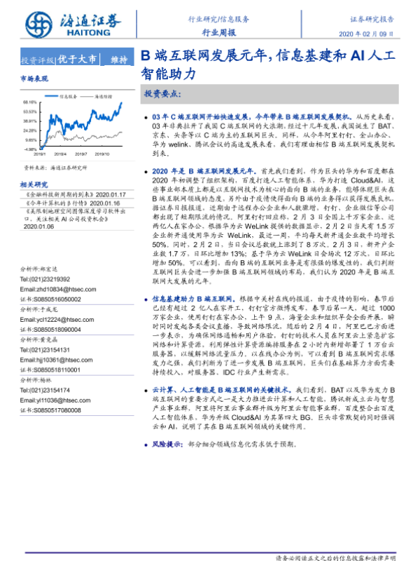 【海通证券】【20200209】信息服务行业周报:B端互联网发展元年,信息基建和AI人工智能助力-5页 行业研究