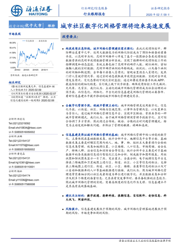 【海通证券】【20200209】信息服务行业跟踪报告:城市社区数字化网格管理将迎来高速发展-2页 行业研究