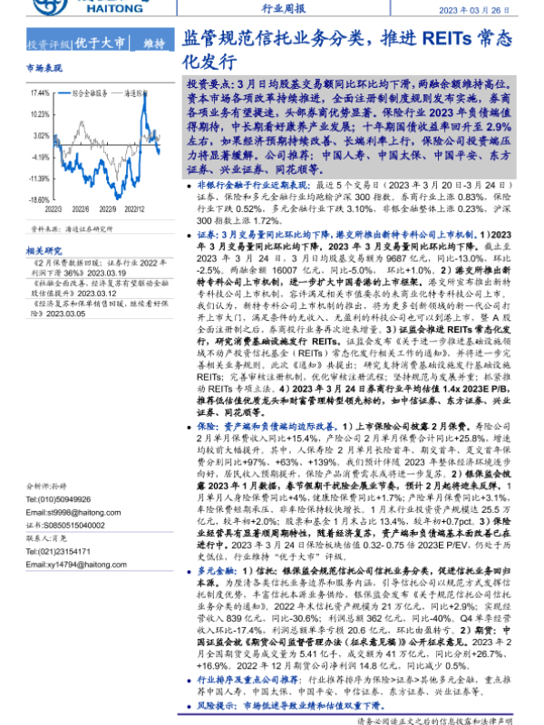 【海通证券】【20230326】综合金融服务行业周报:监管规范信托业务分类,推进REITs常态化发行-11页 行业研究