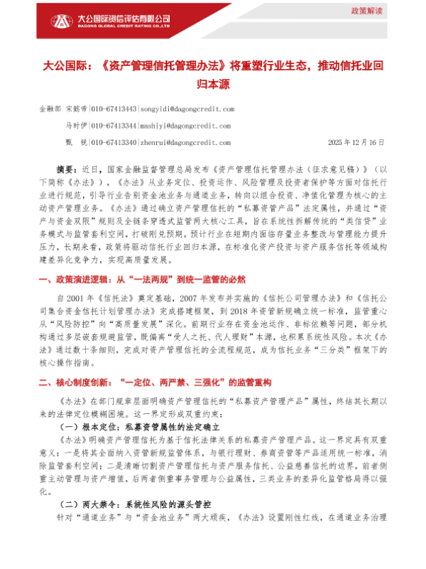 【大公国际】【202512】《资产管理信托管理办法》将重塑行业生态,推动信托业回归本源-5页 政策文件