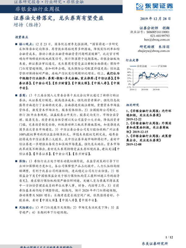 【东吴证券】【20191228】非银金融行业周报:证券法大修落定,龙头券商有望受益-12页 行业研究