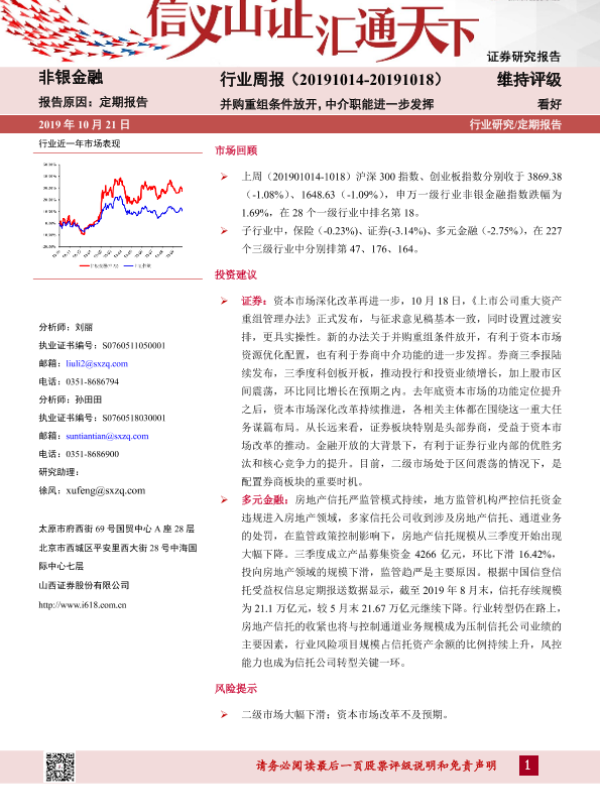【山西证券】【20191021】非银金融行业周报:并购重组条件放开,中介职能进一步发挥-7页 行业研究