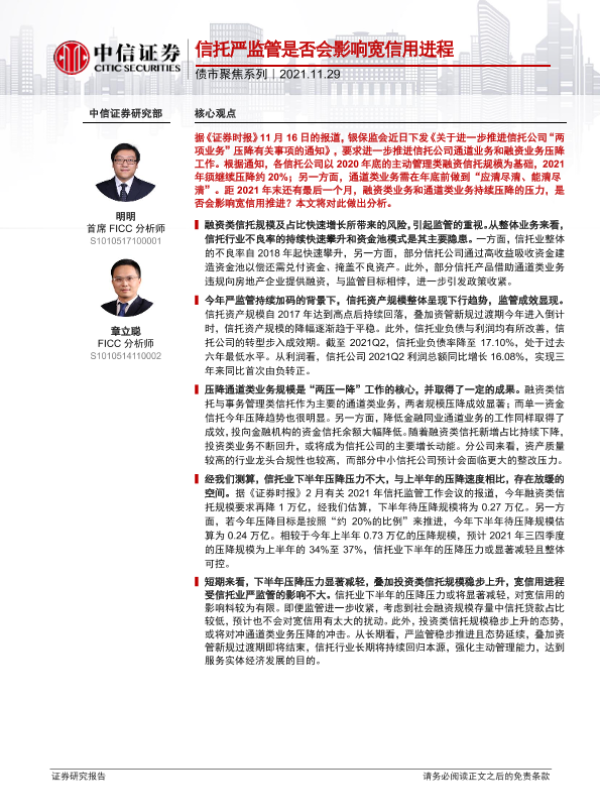 【中信证券】【20211129】债市聚焦系列:信托严监管是否会影响宽信用进程-26页 行业研究