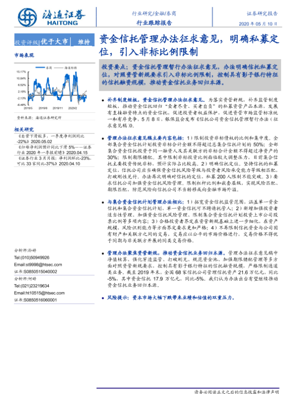 【海通证券】【20200510】券商:资金信托管理办法征求意见,明确私募定位,引入非标比例限制-3页 行业研究
