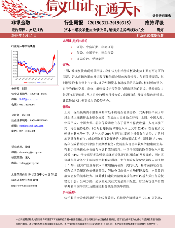 【山西证券】【20190317】非银金融行业周报:资本市场改革叠加业绩改善,继续关注券商板块机会-8页 行业研究