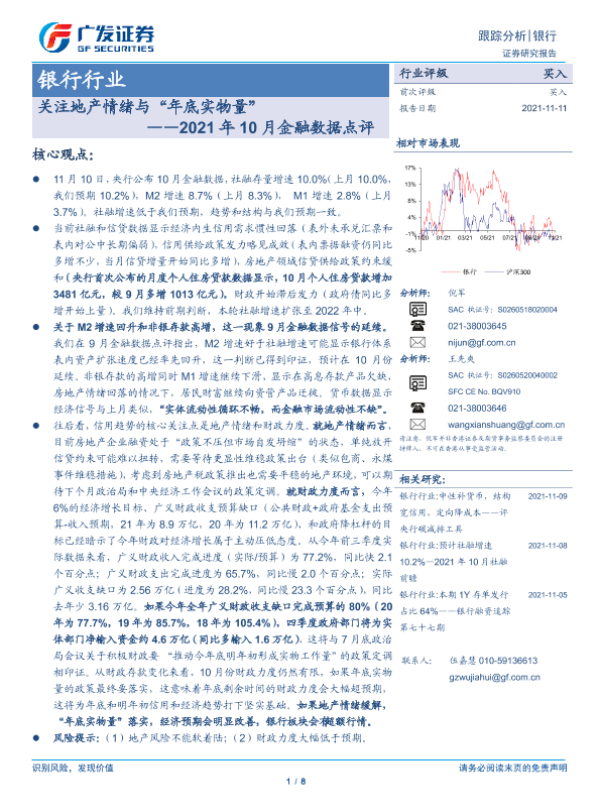 【广发证券】【20211111】关注地产情绪与“年底实物量” ——2021年10月金融数据点评-8页 行业研究