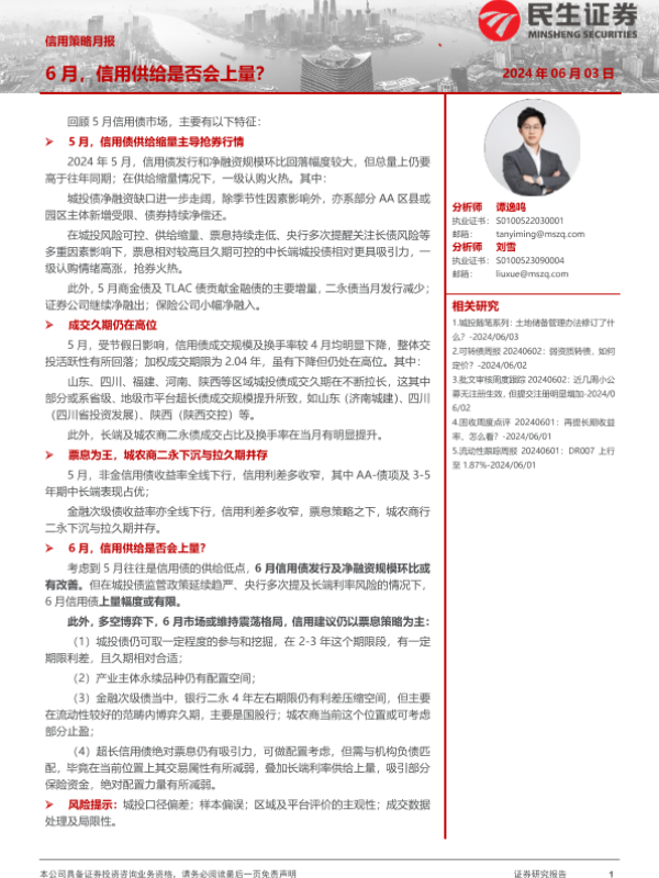 【民生证券】【20240603】信用策略月报:6月,信用供给是否会上量?-27页 行业研究