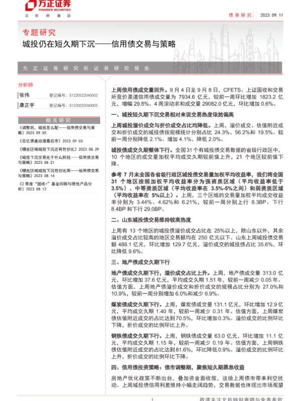 【方正证券】【20230904】信用债交易与策略:调整后,城投怎么配-16页 行业研究