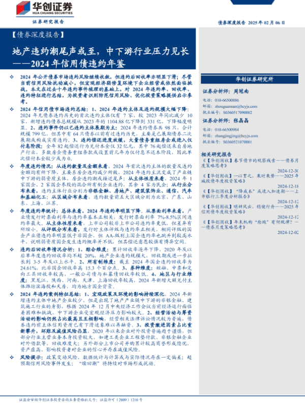 【华创证券】【20250206】2024年信用债违约年鉴:地产违约潮尾声或至,中下游行业压力见长-19页 行业研究