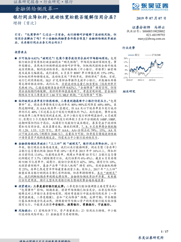 【东吴证券】【20190707】金融供给侧改革一:银行同业降杠杆,流动性宽松能否缓解信用分层?-17页 行业研究
