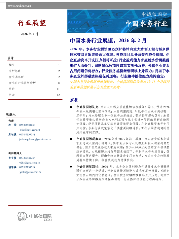 【中诚信国际】【202602】中国水务行业展望,2026年 2月-16页 行业研究