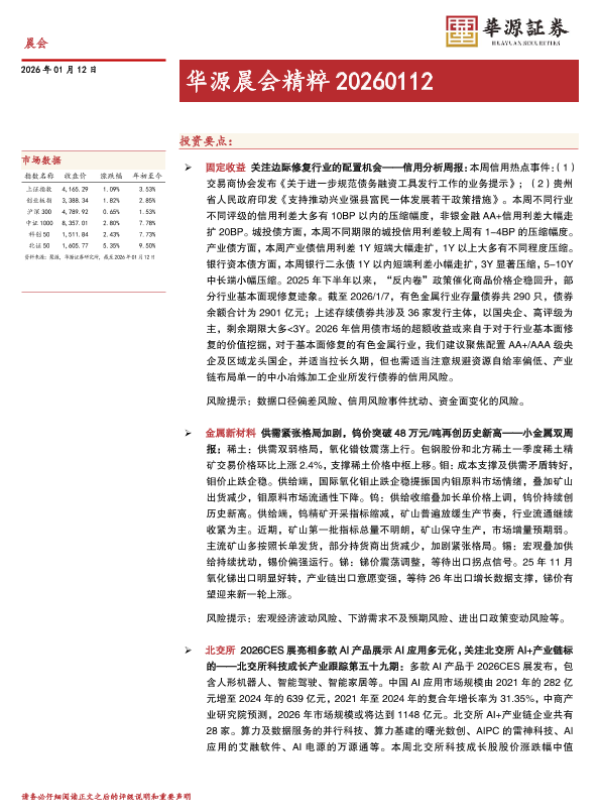 【华源证券】【202601】华源晨会精粹 20260112-15页 会议纪要
