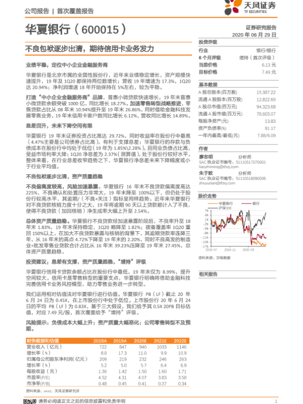 【天风证券】【20200629】不良包袱逐步出清,期待信用卡业务发力-22页 行业研究