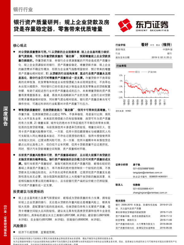 【东方证券】【20190225】银行资产质量研判:规上企业贷款及房贷是存量稳定器,零售带来优质增量-22页 行业研究