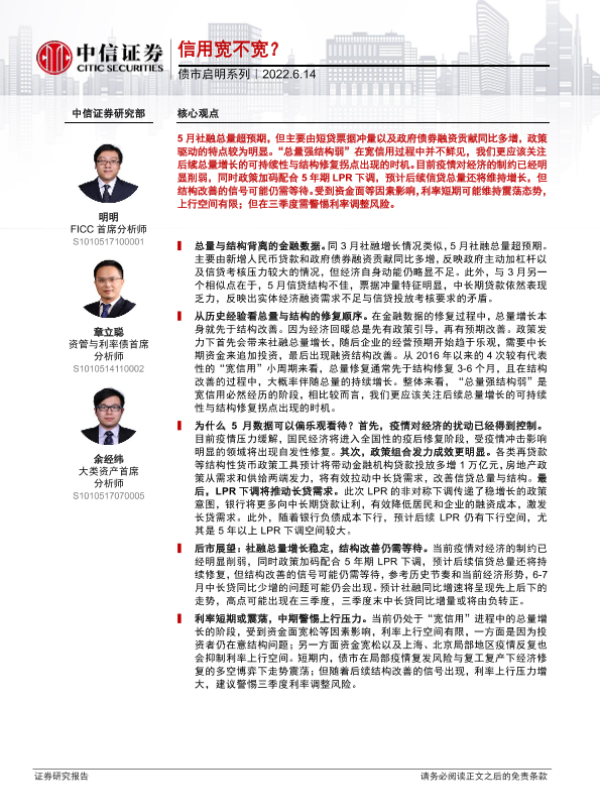 【中信证券】【20220614】债市启明系列:信用宽不宽?-33页 行业研究