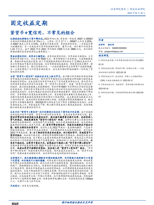 【国盛证券】【20230220】固定收益定期:紧货币+宽信用,不常见的组合-17页 行业研究