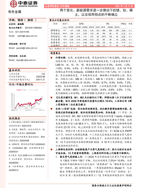 【中泰证券】【20210117】20210117-中泰证券-有色金属行业周报:两个变化:新能源需求进一步推动下的锂、钴、稀土,以及信用拐点的不断确立-40页 行业研究