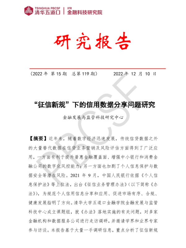 【清华大学五道口金融学院金融发展与监管科技中心】【20221210】“征信新规”下的信用数据分享问题研究-62页 行业研究