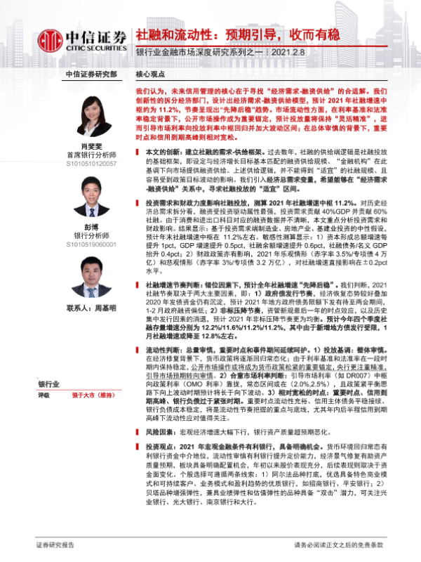 【中信证券】【20210208】社融和流动性:预期引导,收而有稳-21页 行业研究