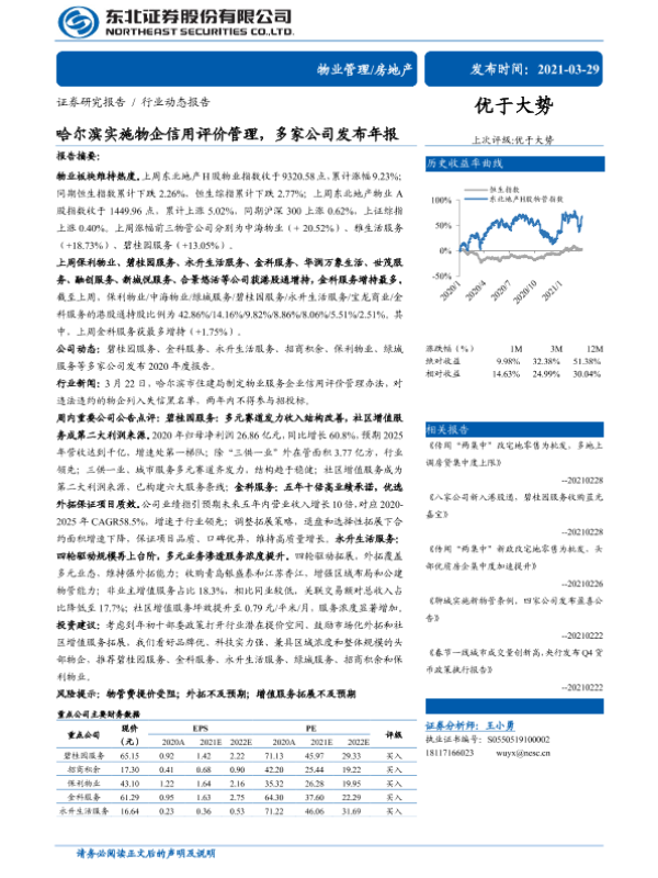 【东北证券】【20210329】哈尔滨实施物企信用评价管理,多家公司发布年报-14页 行业研究