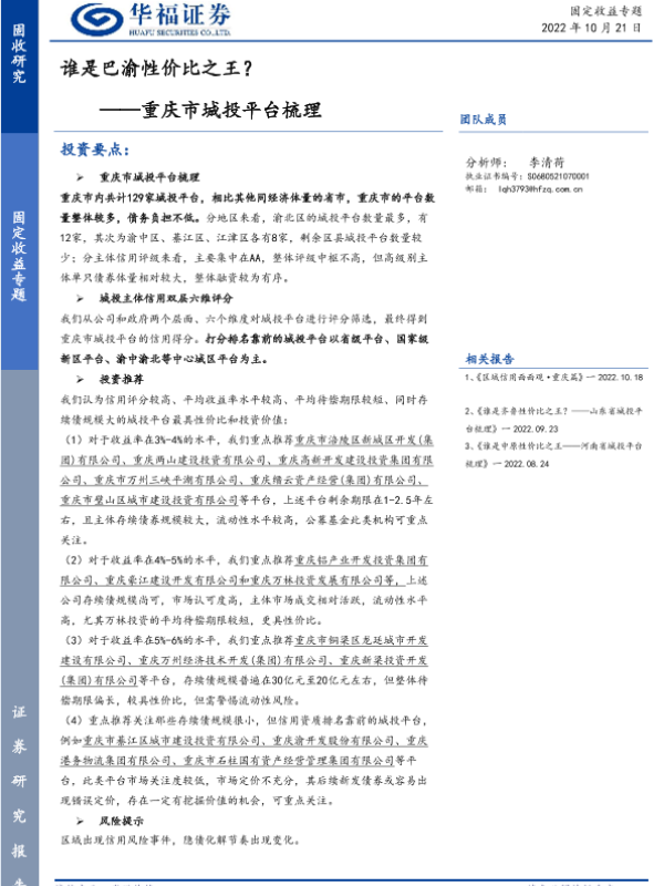 【华福证券】【20221021】重庆市城投平台梳理:谁是巴渝性价比之王?-65页 行业研究