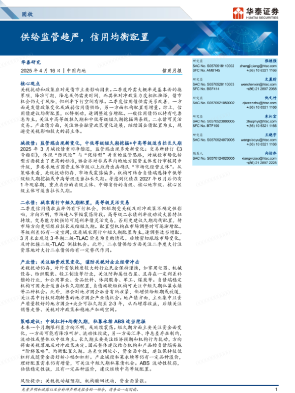 【华泰证券】【20250416】固收信用月报:供给监管趋严,信用均衡配置-30页 证券期货研究报告